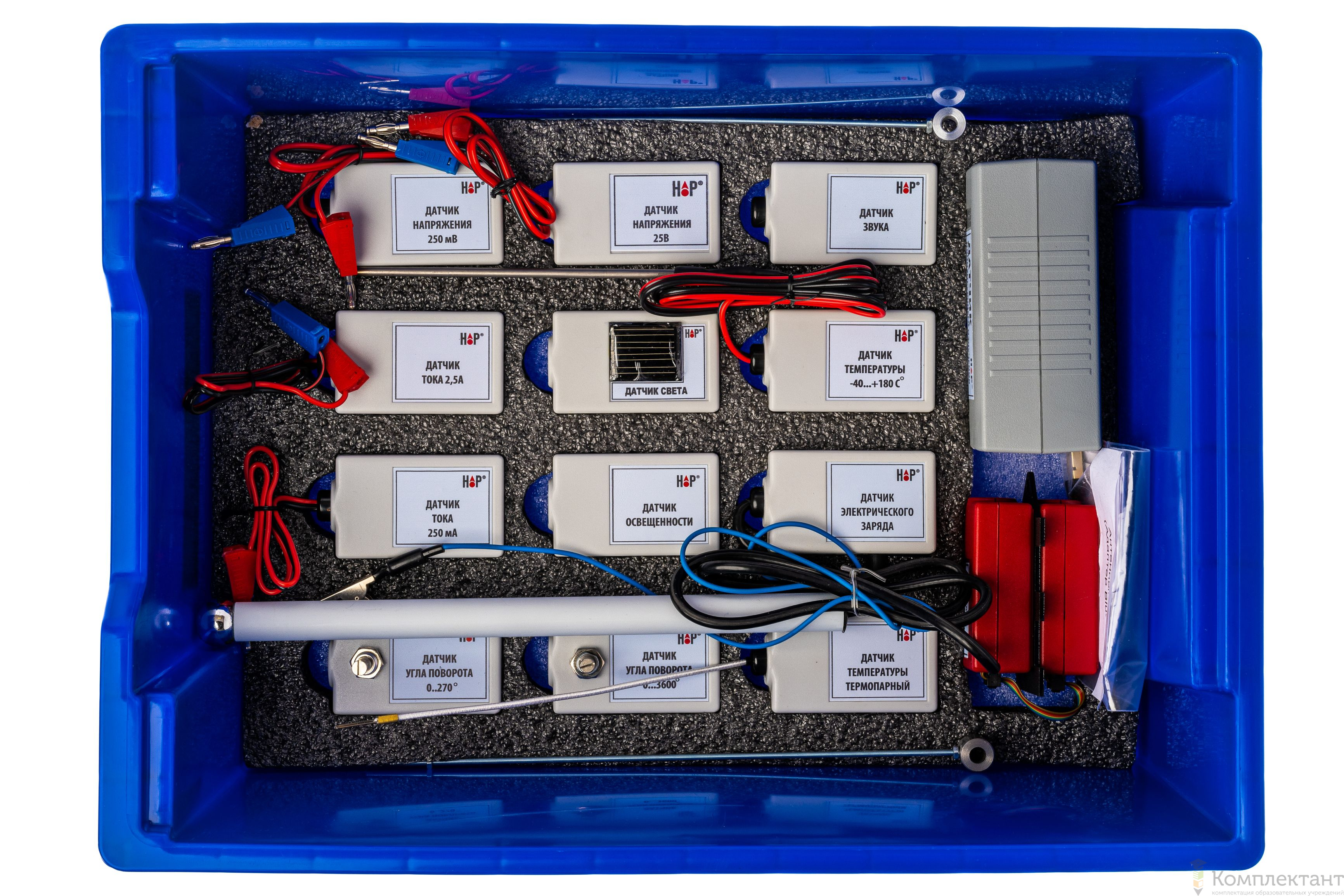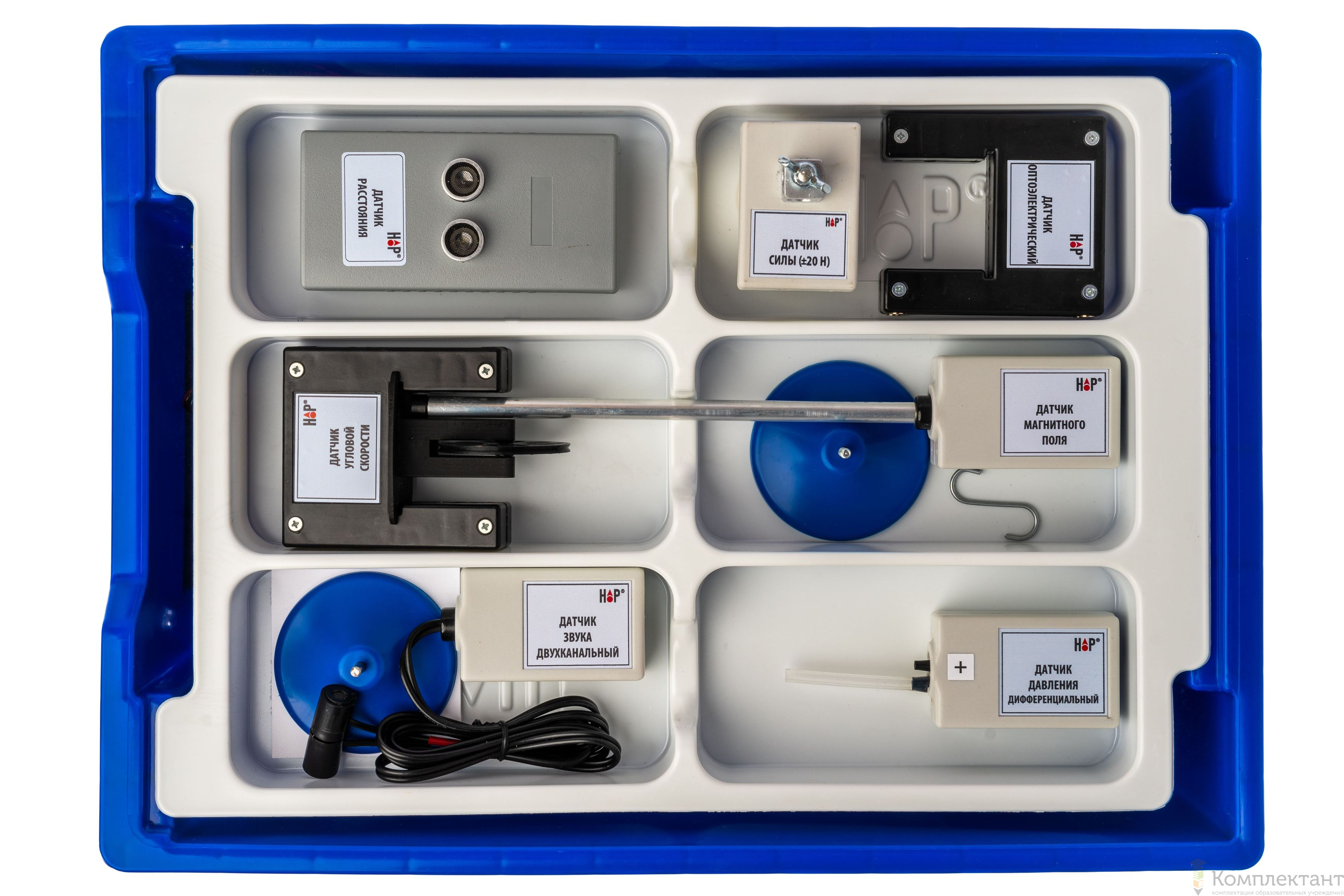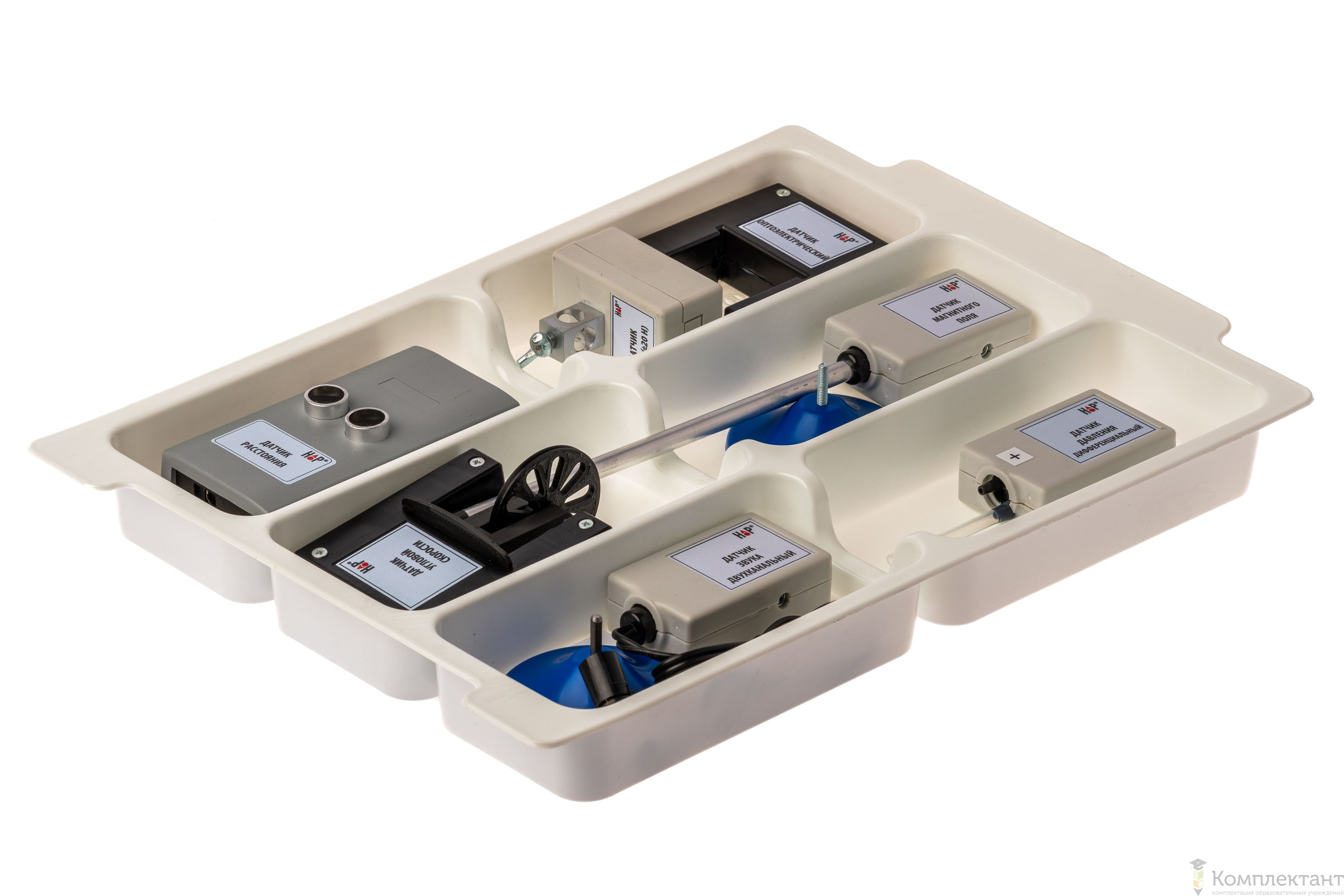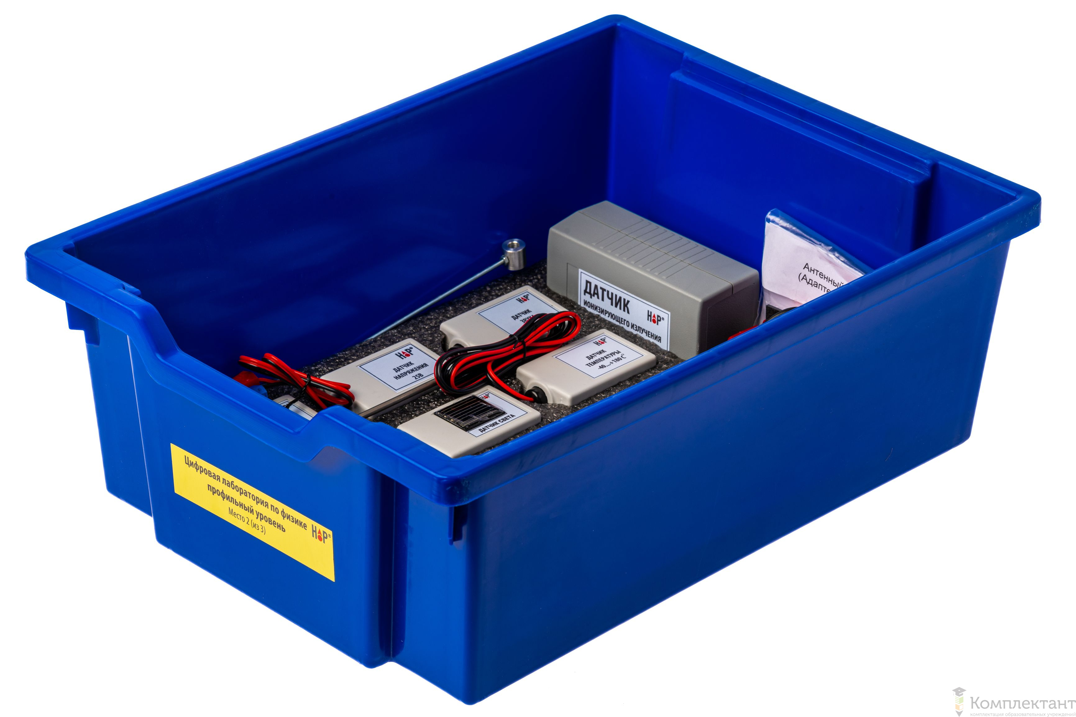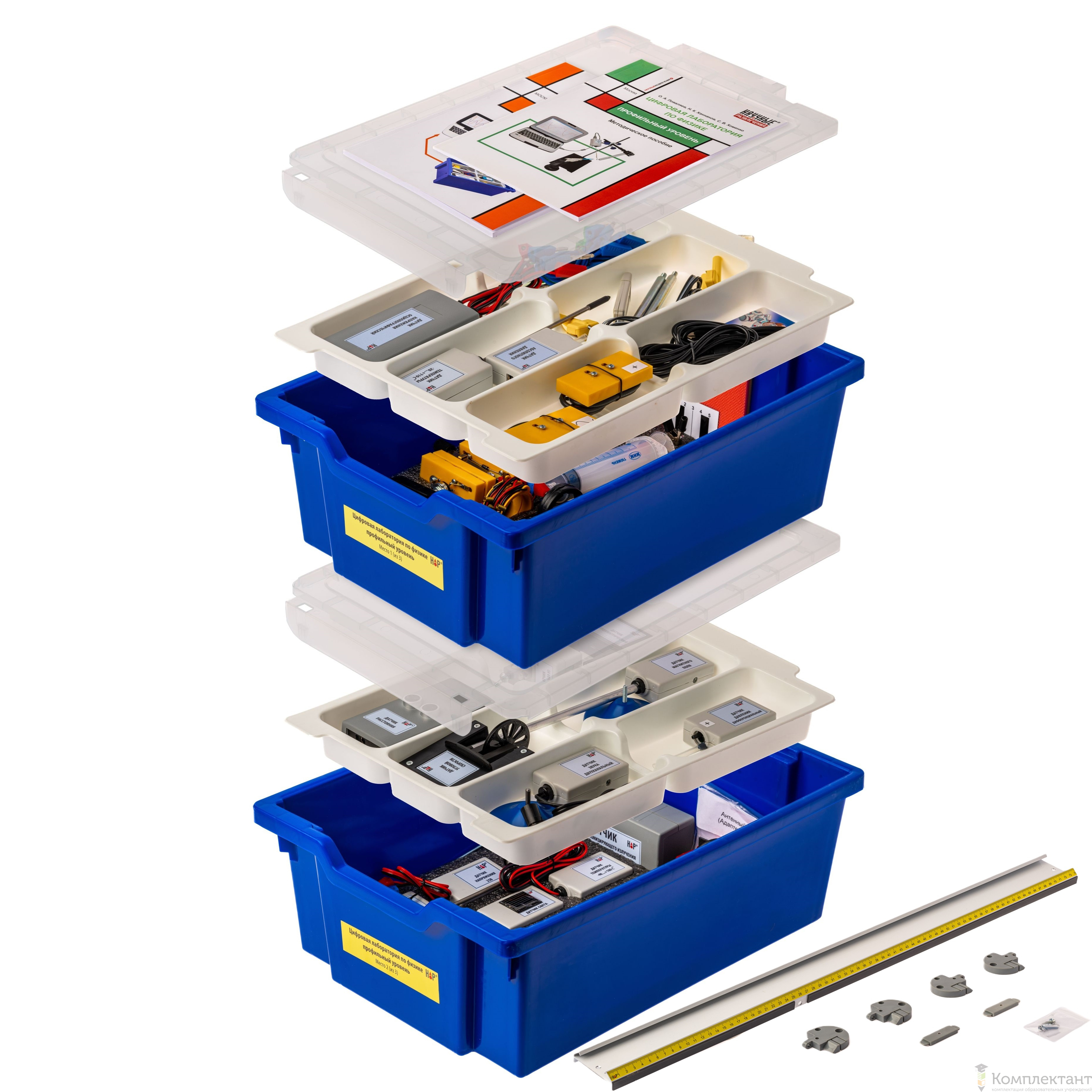 Все оборудование цифровой лаборатории (кроме скамьи лабораторной) укомплектовано в системы хранения, которые закрываются прозрачной пластиковой крышкой на защелках для обеспечения наблюдения за содержимым. Комплект оборудования и датчики в системе хранения располагаются на ложементах в индивидуальных ячейках.