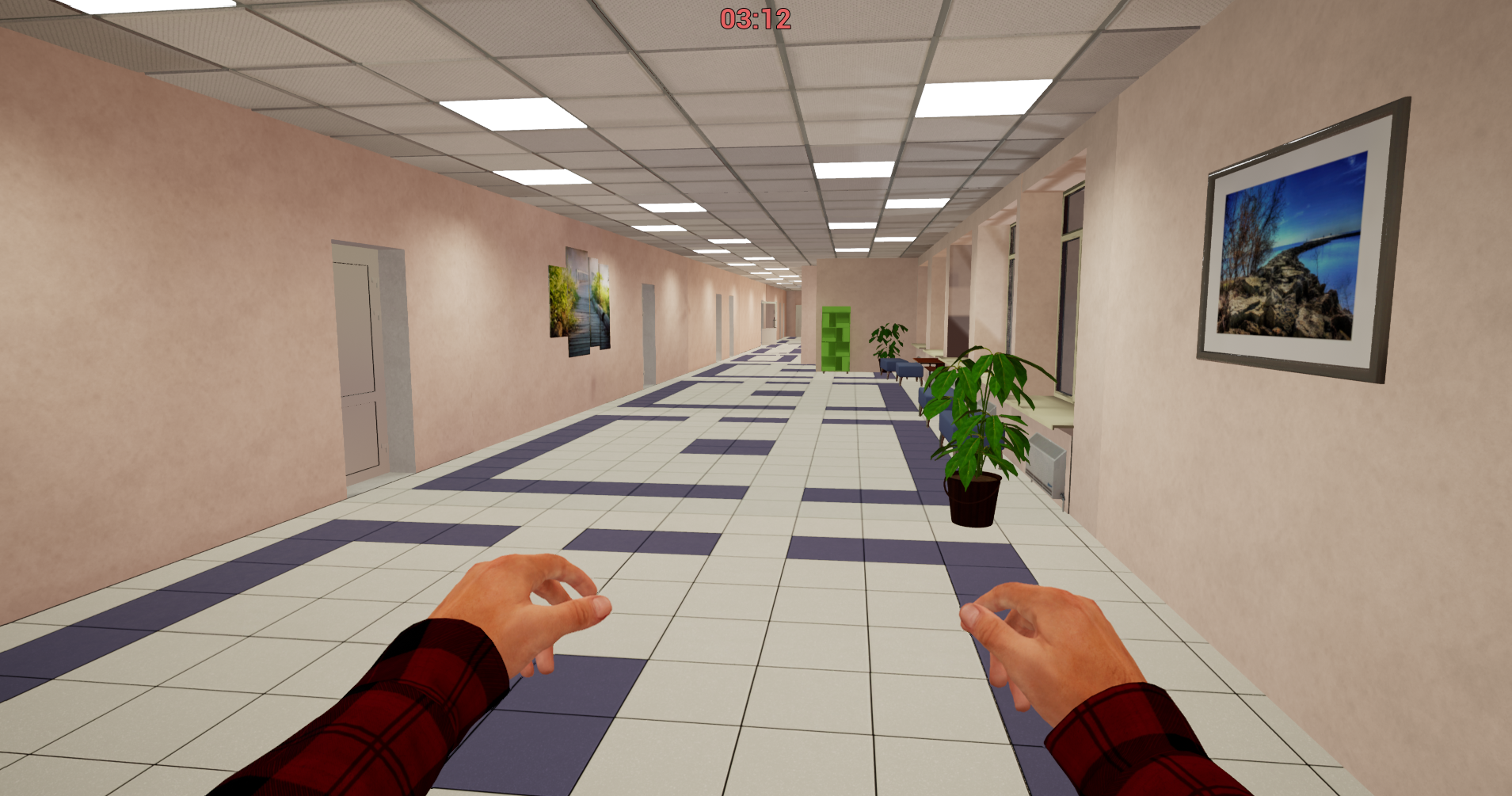 Эвакуация. Очаг возгорания в другом помещении. Пользователь может эвакуироваться. Опасные факторы пожара позволяют двигаться по путям эвакуации, но ближайший эвакуационный выход оказывается заблокирован.